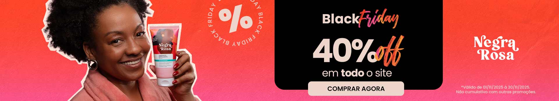 Negra Rosa é a marca digital pioneira em beleza negra no Brasil. Criada por e para mulheres negras, a marca traz, desde 2016, produtos focados na pluralidade dos tons das peles negras e cabelos crespos e cacheados. A Negra Rosa entrega produtos de Skincare, maquiagem e cabelo com fórmulas de alta performance, que trazem o cuidado, saúde, bem-estar, liberdade e prazer. Nosso propósito é que toda mulher negra se sinta vista, escutada, respeitada e bonita. Afinal, toda mulher negra pode tudo!