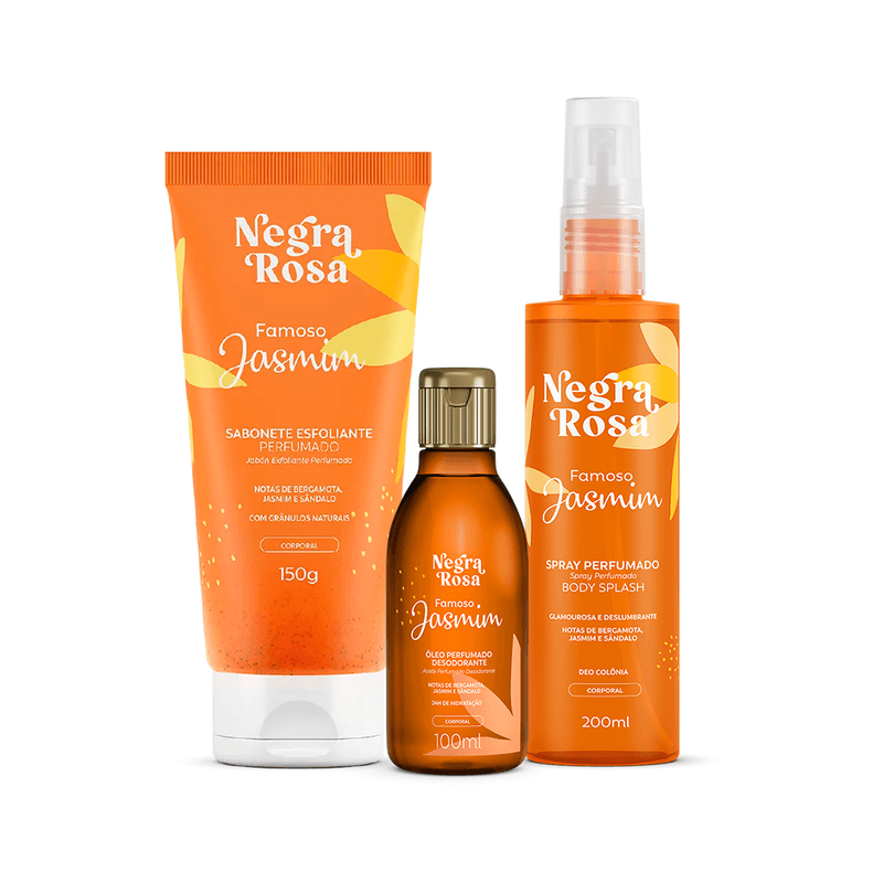 A linha Famoso Jasmim Negra Rosa convida você para uma experiência glamourosa e deslumbrante durante o autocuidado. Sua fragrância atraente e sofisticada combina as notas frutais de Manga e Bergamota no topo, a exuberância do Jasmim e Olíbano no coração e a força amadeirada do Sândalo com a Baunilha na base. O Sabonete Esfoliante Corporal Famoso Jasmim Negra Rosa é o cuidado diário para uma limpeza purificante, sem agredir a pele. Sua fórmula possui microesferas naturais, que promovem uma esfoliação suave, removem impurezas e células mortas, desobstruem os poros e auxiliam na renovação celular. Sinta a sua pele macia e renovada!